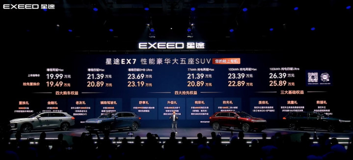这场发布会最打动用户的,莫过于径直的价钱与由衷满满的职权。星途EX7共推出3款纯电、3款增程版块,官方指点价19.99万—26.39万元,置换后门槛更低,在同级别大五座SUV里竞争力很强。官方也用一句很直白的话总结:比20万级车型更实用,比30万级车型更贴心。同期,新车还奉上多项实用职权:车载雪柜免费送、大轮毂与高端轮胎半价、定制车漆半价、二排小桌板限时救助,何况提供终生质保、终生流量、终生支持三项基础保险。对普通家庭来说,无谓为了豪华多花冤枉钱,也无谓为了建设和谐安全感。
