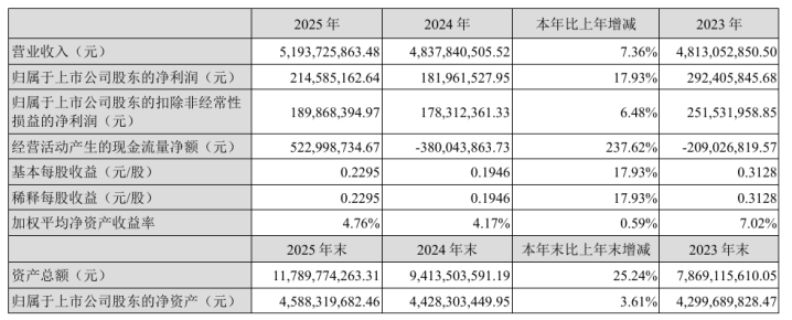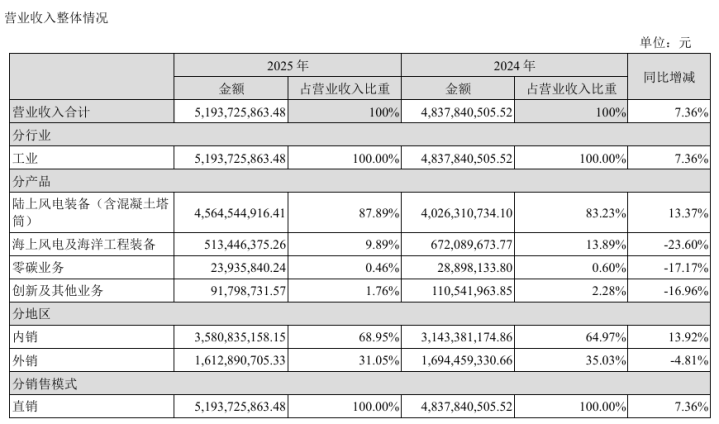阐述潜入,2025年,泰胜风能罢了营业收入51.94亿元,同比高潮7.36%;罢了包摄于上市公司股东的净利润2.15亿元,同比高潮17.93%;罢了包摄于上市公司股东的扣除非往往性损益的净利润1.90亿元,同比高潮6.48%。