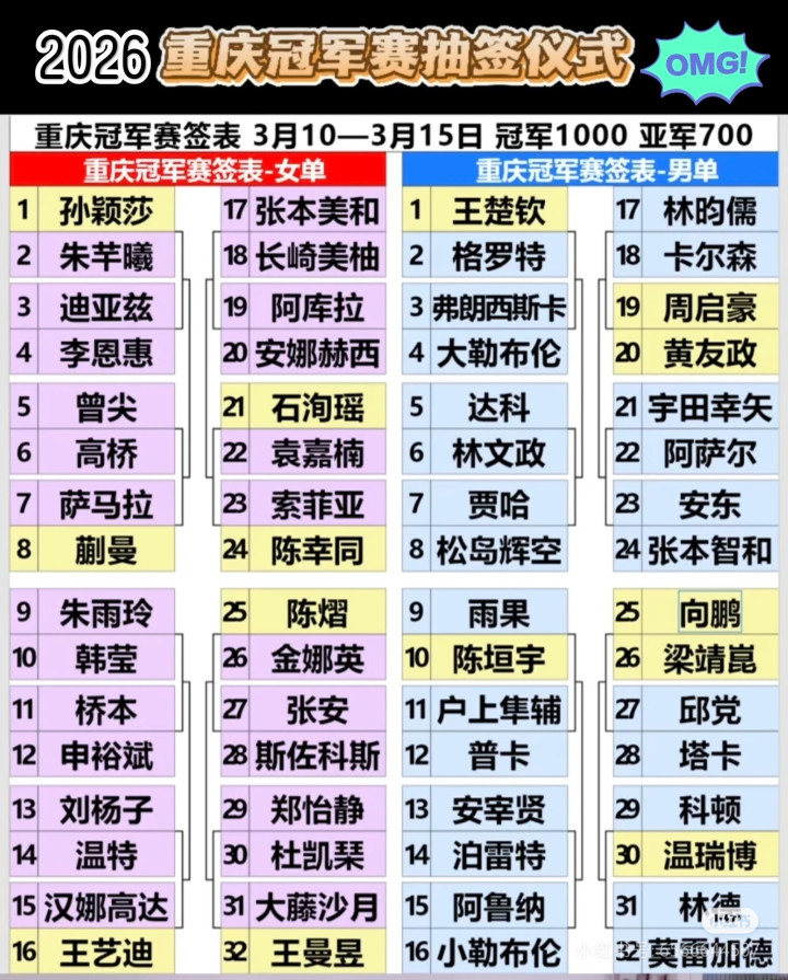 北京技术3月8日,WTT重庆冠军赛签位仍是出炉了,关于国乒来说,女队因为除了石洵瑶外,都有种子位,举座的签天然比拟散布,上半区各协会的一姐都在,天然会比拟硬一些,而下半区里天然有张本好意思和这么的顶尖妙手,但举座上看如故比拟松驰一些!