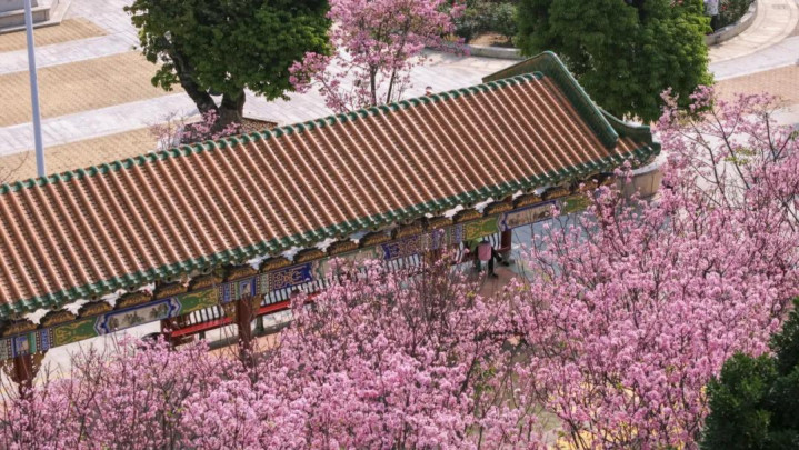 宝墨园南粤苑的樱花已达“颜值巅峰”